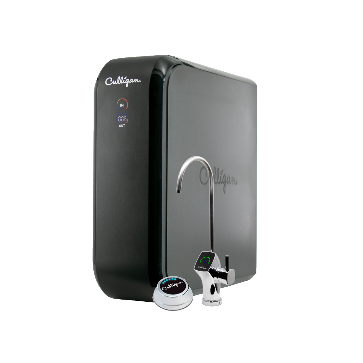 - Dedicated drinking water faucet — purified water on demand, right where you need it